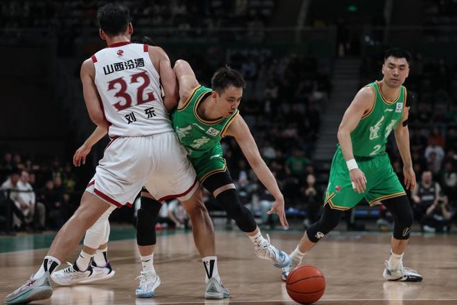 3月13日,山西汾酒队球员迪亚洛(左)在比赛中。新华社记者 潘昱龙 摄