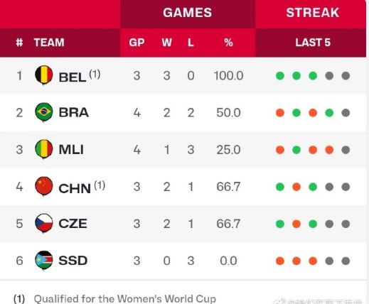 不过B组剩余的4个对手,中国女篮目前已经接连战胜马里女篮、南苏丹女篮,前三场2胜1负积分达到5分,接下来将对阵捷克女篮与巴西女篮。原本中国女篮将与捷克女篮正面对决,争夺一个提前出线的名额,但在巴西女篮击败马里女篮后,中国女篮得以提前两场出线晋级女篮世界杯。