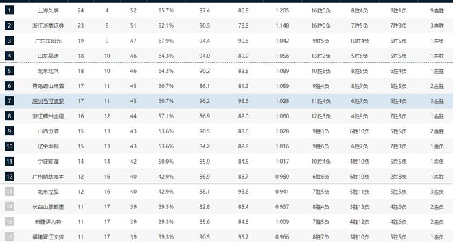 山东男篮虽然大胜天津男篮,但是主力大外援克里斯遭遇手指骨裂伤情,将会缺阵三周左右的比赛。作为山东男篮头号得分手,克里斯的伤缺对于球队来说影响极大,接下来球队的战绩很有可能持续下滑。浙江广厦虽然缺少了孙铭徽和布朗两大后场核心,但是球队依旧保持顽强的韧劲,一波三连胜稳固了联赛第二的位置,朱俊龙、胡金秋、塔克三大核心最近的状态都很不错。深圳男篮则是主场109-77大胜新疆男篮,在贺希宁和王浩然两大核心找到状态之后,深圳男篮就逐渐重回正轨,接下来球队的战绩排名有望重返前六。