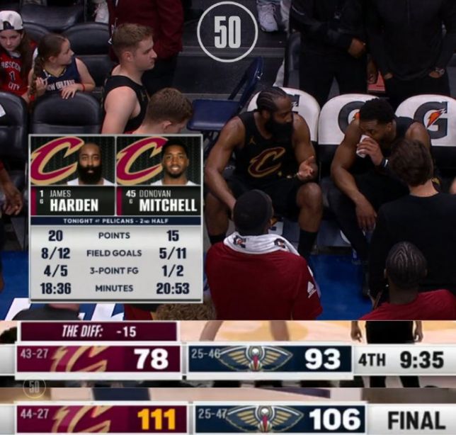 - 2026年03月22日 骑士末节爆发擒鹈鹕取3连胜 哈登20+10&末节13分 米切尔27+7