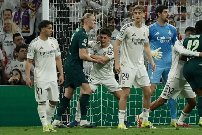 这种身体条件上的差距不仅引发关注,也让不少皇马球迷产生疑问。很多人不理解,为什么不是更高的球员去负责盯防曼城这位“杀手”。甚至在比赛刚开始时,还有人认为这种对位是防守分工出现问题,球队在定位球防守中出现错位,而且这种错位似乎还在不断重复。