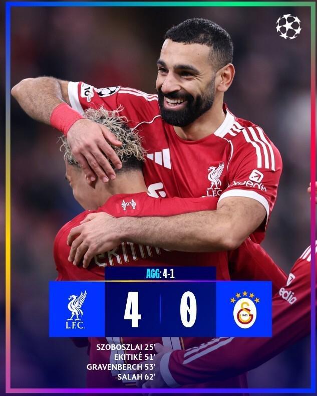 第26分钟索博斯洛伊推射破门,利物浦队1-0取得领先。半场补时阶段,萨拉赫错失点球机会。第51分钟埃基蒂克包抄推射破门,利物浦2-0扩大优势,两回合2-1反超对手。第53分钟和第62分钟,格拉芬贝赫和萨拉赫又先后取得进球,利物浦4-0赢下胜利,两回合4-1逆转对手。