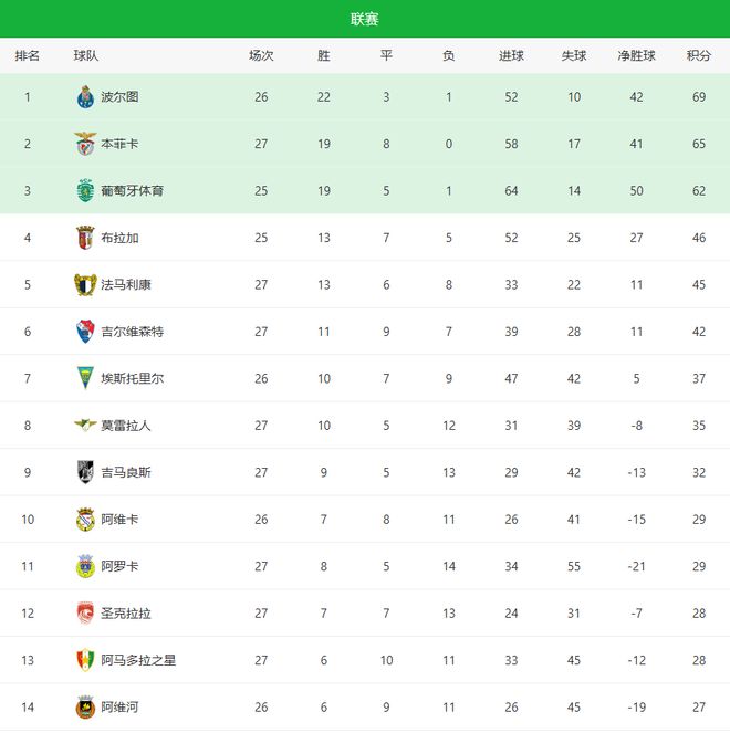 拿下此役后,穆里纪奥在葡超豪取27轮不败,成为葡超唯一一支保持不败的球队,同样也是欧洲足坛唯一一支不败之师!但是此前的8场平局,本菲卡只能成为争冠的追赶者,目前球队积分达到65分,成功反超葡萄牙体育升至第二位(少赛2场),与榜首波尔图的差距缩小至4分。虽然波尔图仍少赛一场,但早已经没有赛季中前期那样巨大的分差,一两场爆冷,随时都有可能让出榜首!